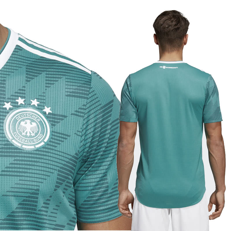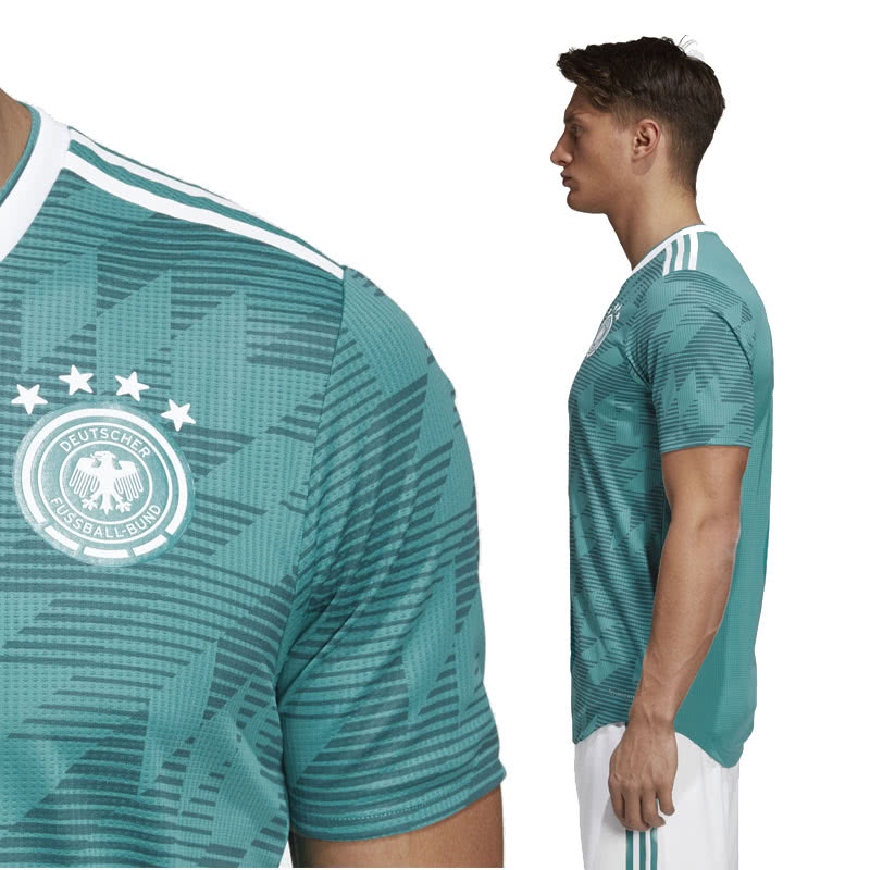 Das neue Deutschland Trikot für die Auswärtsspiele der Nationalmannschaft hat ein neues Design erhalten. Für die WM 2018 in Russland und auch das Jahr 2019 trägt die deutsche Fußball Nationalmannschaft ein Trikot mit einem ganz traditionellen Look. Das geprägte Muster beim adidas DFB Auswärtstrikot erinnert dabei an vergangene Trikots und die Ruhmreiche Geschichte der deutsche Nationalmannschaft.