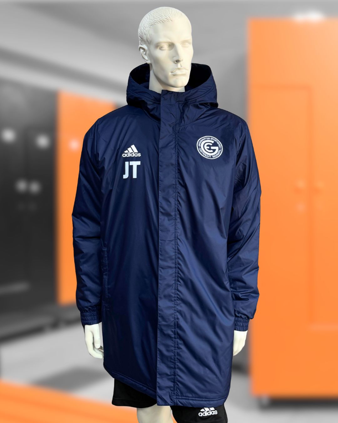 Der Verein hat sich seine adidas Stadionjacken nicht nur mit einem Vereinslogo oder auch mit dem Vereinsnamen und einer Sponsorenwerbung bedrucken lassen. Mehr braucht es auch nicht für die Stadionjacken des Vereins. Die Initialen auf der Coachjacke sind schon Optional.