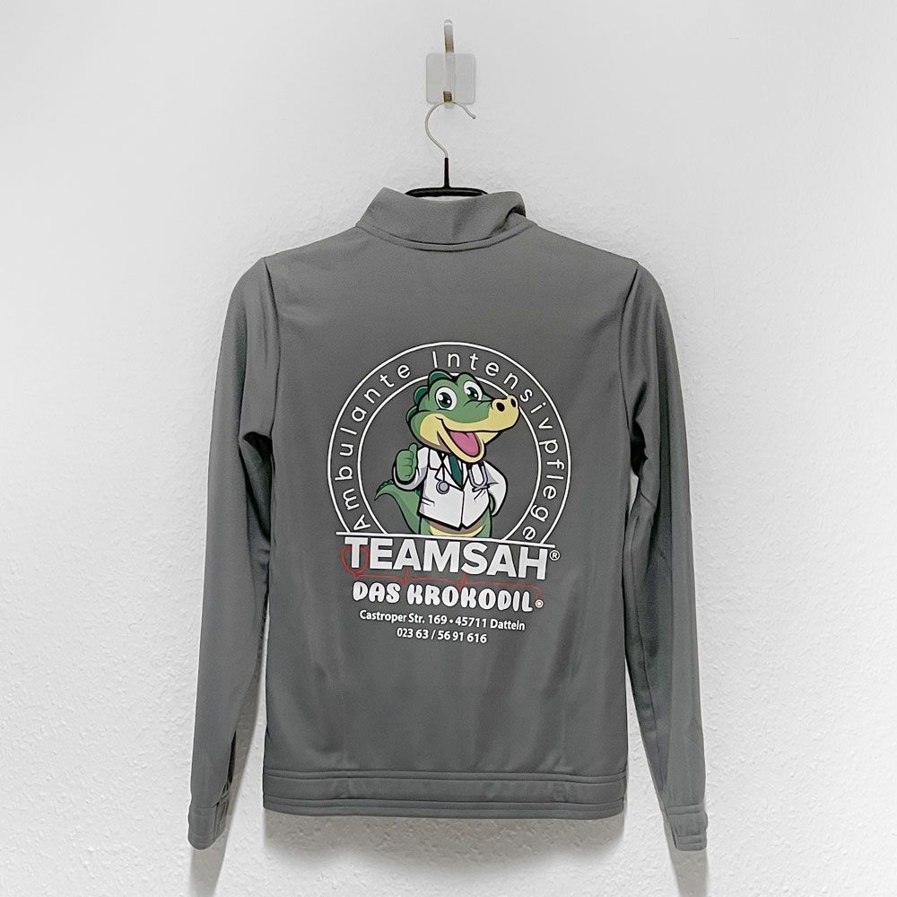 Bei den grauen adidas Trainingsjacken von Kültürspor Datteln ist das ganz sicher nicht der Fall. Die Sponsorenwerbung von Teamsah auf dem Rücken der Kinder Trainingsjacken ist ganz sicher eines der coolsten Logos das wir je aufgedruckt haben.