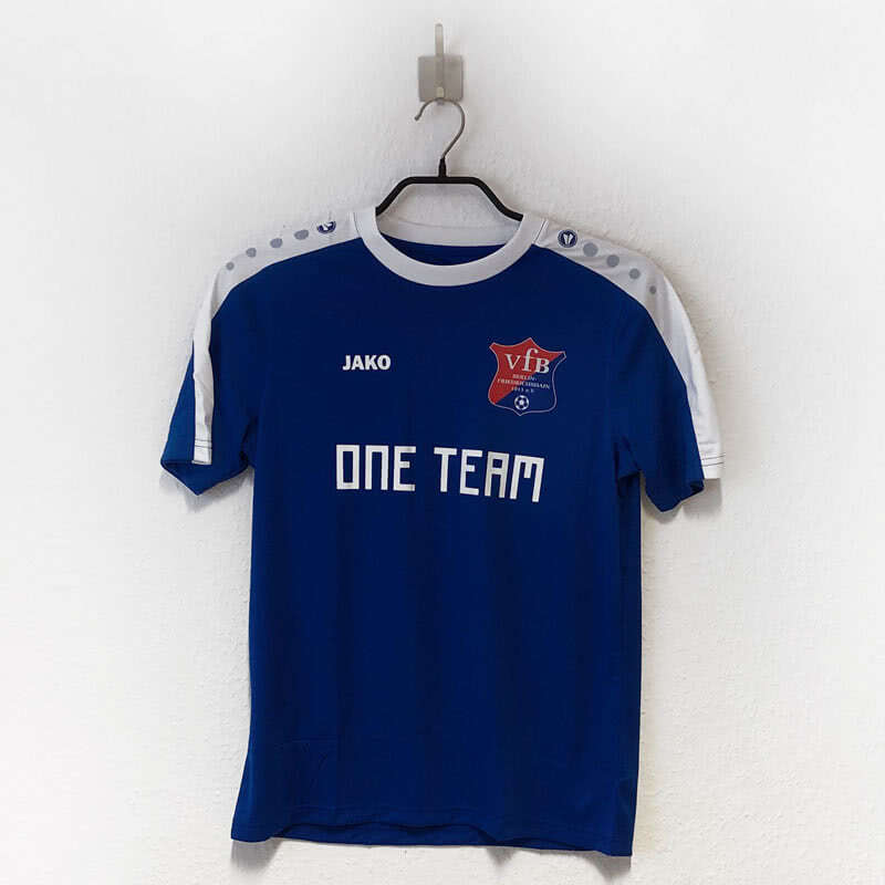Neben dem farbigen Club Logo setzt der VfB Berlin 1911 zudem auf blaue Jako Trikots. Ein weiteres Highlight ist zudem die Brustbedruckung der Trikots.