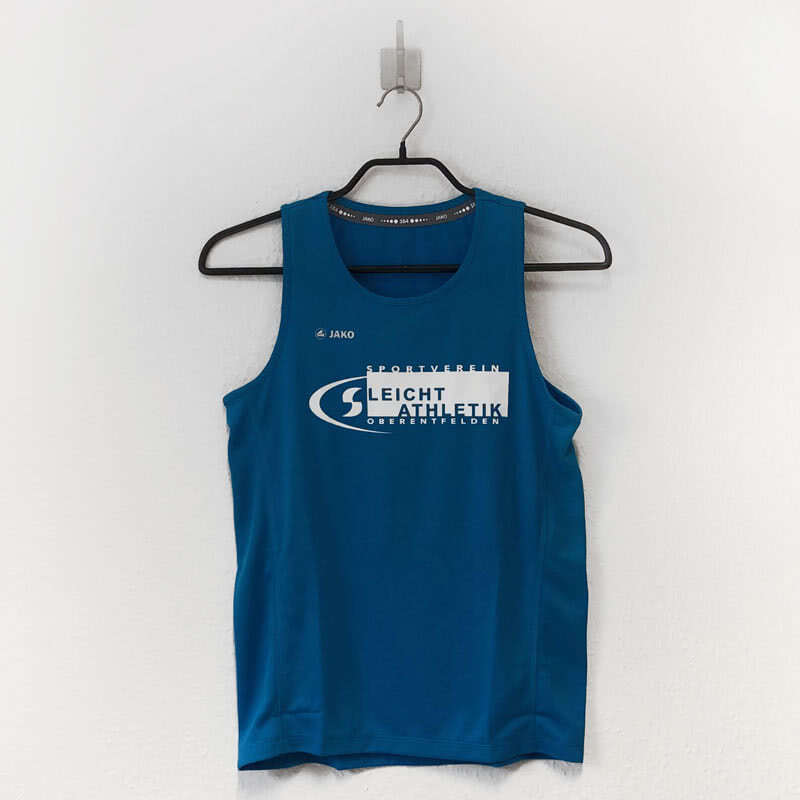 Info: Bei der Bedruckung von Laufshirt und Leichtathletik Tanks achten wir spezielle drauf das eine haut verträgliche Bedruckung verwendet wird.