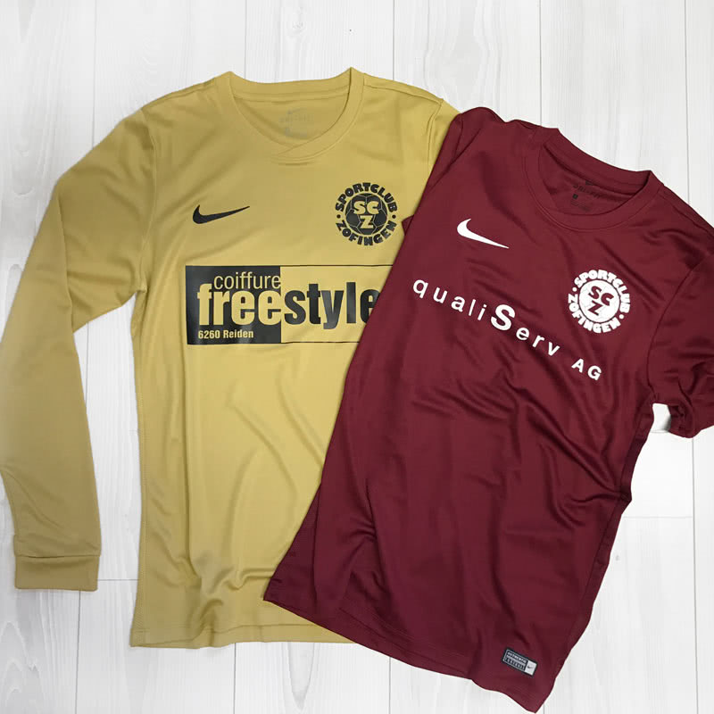 Ob Heimtrikot oder Auswärtstrikot auch in jeder Spielklasse braucht man mindestens 2 unterschiedliche Trikotsätze. Doch Trikots Hose und Stutzen sind nicht alles! Der SC Zofingen hat sich bei seiner neuen Sportbekleidung für einen ähnlichen Ansatz entschieden. Mit den Nike Trikots in rot und gold aus unserem Shop war dies auch kein Problem.