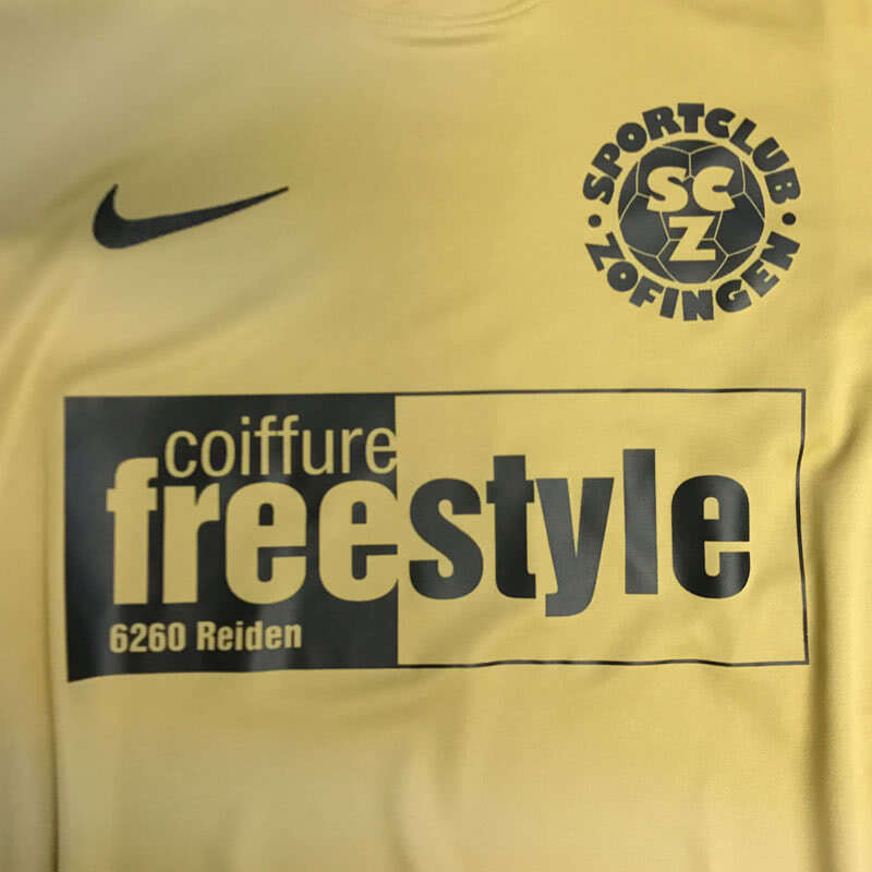 Ob als Trikot für den Trikotsatz oder als Trainingsshirt wie beim SC Zofingen wird bei der Bedruckung ein Plastisoldruckverfahren verwendet. Das Druckverfahren ermöglicht einen sauberen Druck mit dem auch Details gut darzustellen sind. So lässt sich wie auch bei den Trikots des SC Zofingen auch das Vereinslogo möglichst genau drucken.