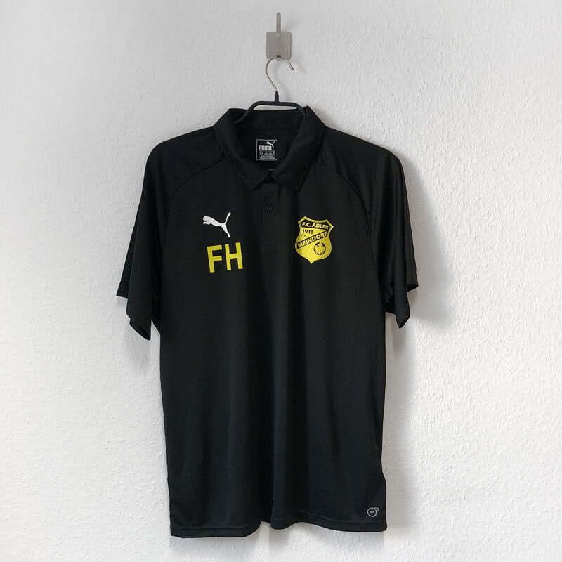 Neben dem Vereinswappen sind auf den Puma Poloshirts aus unserem Shop auch die einzelnen Initialen der Spieler zu sehen. Auch hier geht der FC Adler Meindorf den Weg vieler Profi Mannschaften. Statt es kompletten Spielernamen ist auf den Poloshirts nur das 2stellige Kürzel des jeweiligen Spielers zu sehen.