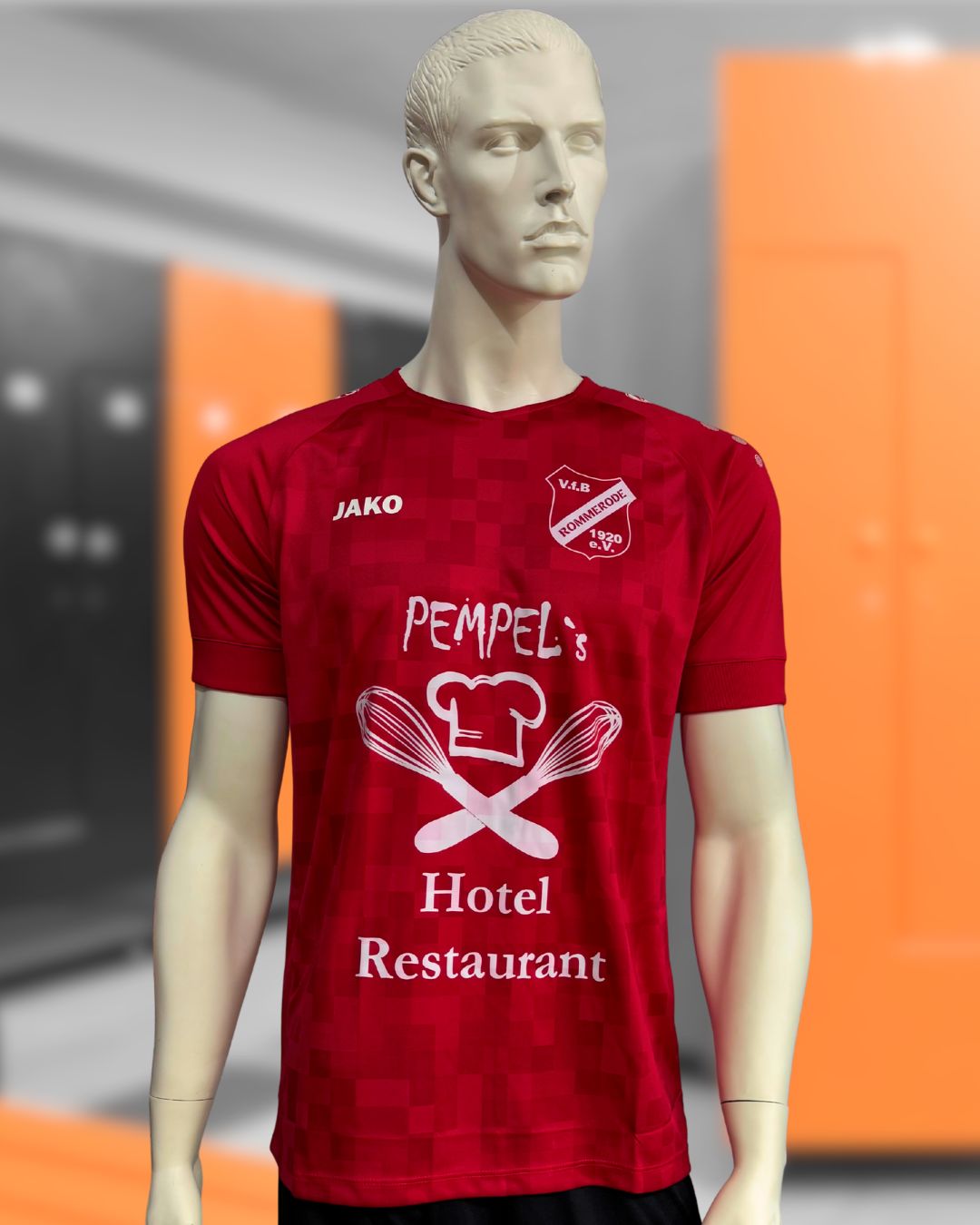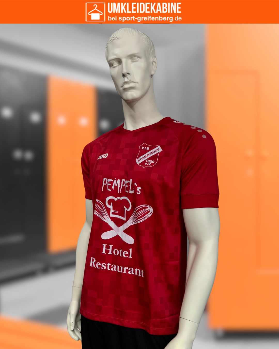 Der Verein hat sich die roten Grafik Trikots von Jako sowohl auf der Brust wie auch auf dem Rücken bedrucken lassen. Auf der Brust ist sogar eine großen Sponsorenwerbung direkt über das Pixel Muster gedruckt wurden. Wie deutlich das Vereinslogo und das Sponsorenlogo aber zu sehen sind, siehst du auf den Bildern.