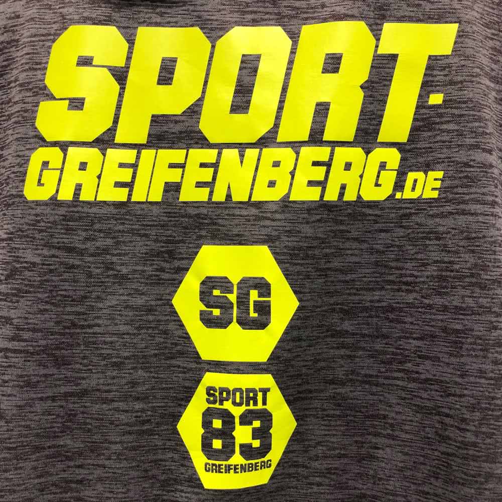 Daher möchte wir heute eine Kombination vorstellen die wir derzeit extrem stark finden. Dafür verwenden wir graue Sportartikel mit einer neongelben Bedruckung.
