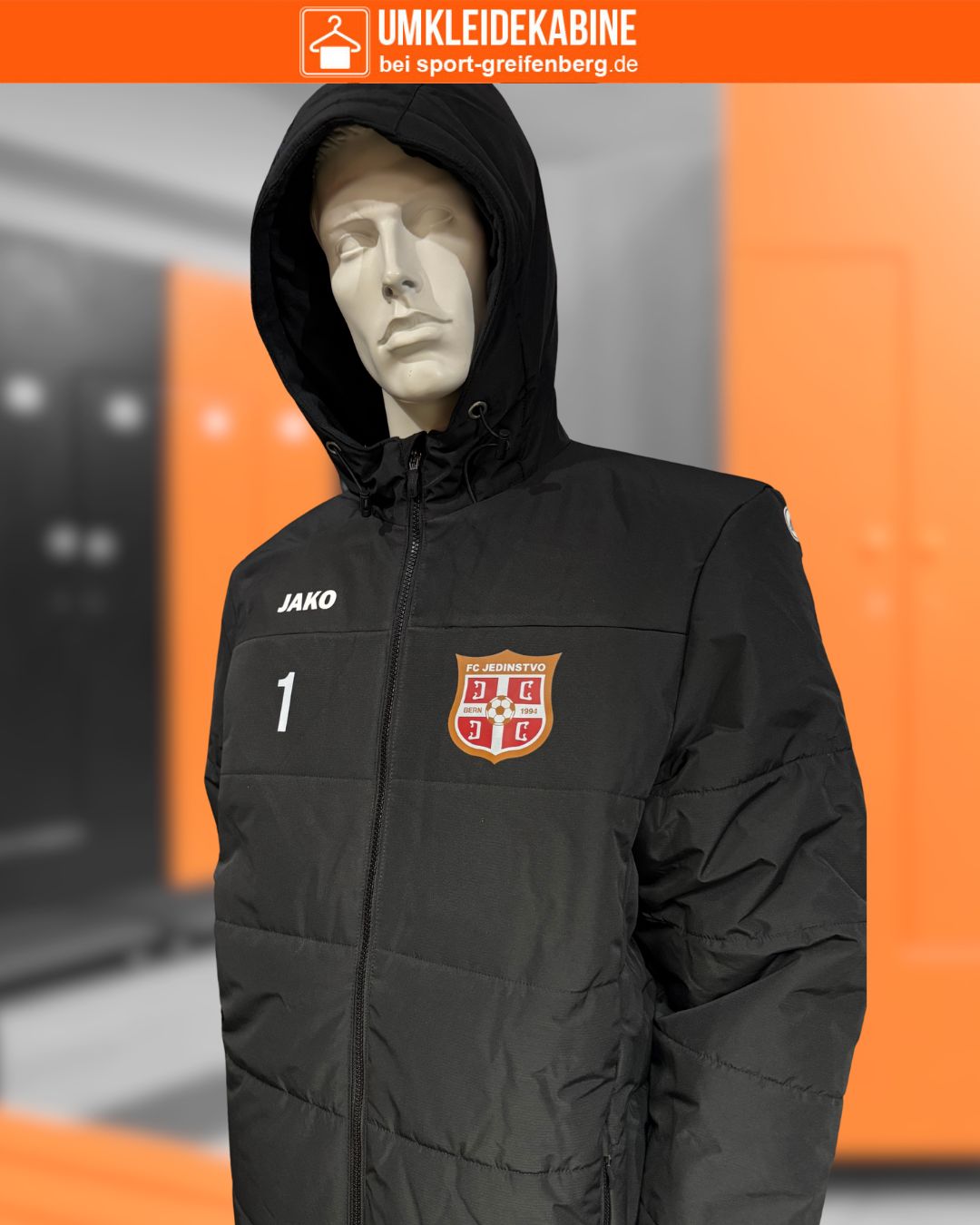 Häufig werden diesen Jacken ohne Vereinslogo oder Vereinsnamen bestellt. Dabei sehen die dicken Winterjacken für den Verein mit dem eigenen Wappen doch noch viel besser aus. Genau das hat sich auch der FC Jedinstvo gedacht und sich seine warme Winter Stadionjacken für die Betreuer und das Team von uns bedrucken lassen.